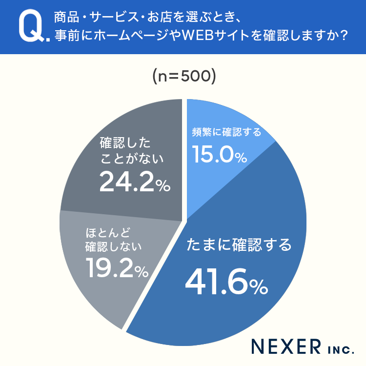 では、実際にどれくらいの人がホームページを事前に確認しているのでしょうか。