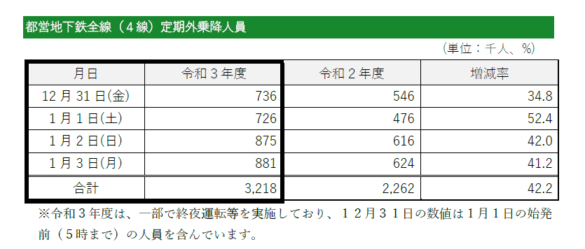 令和3年度 年末年始期間における都営地下鉄の利用状況について