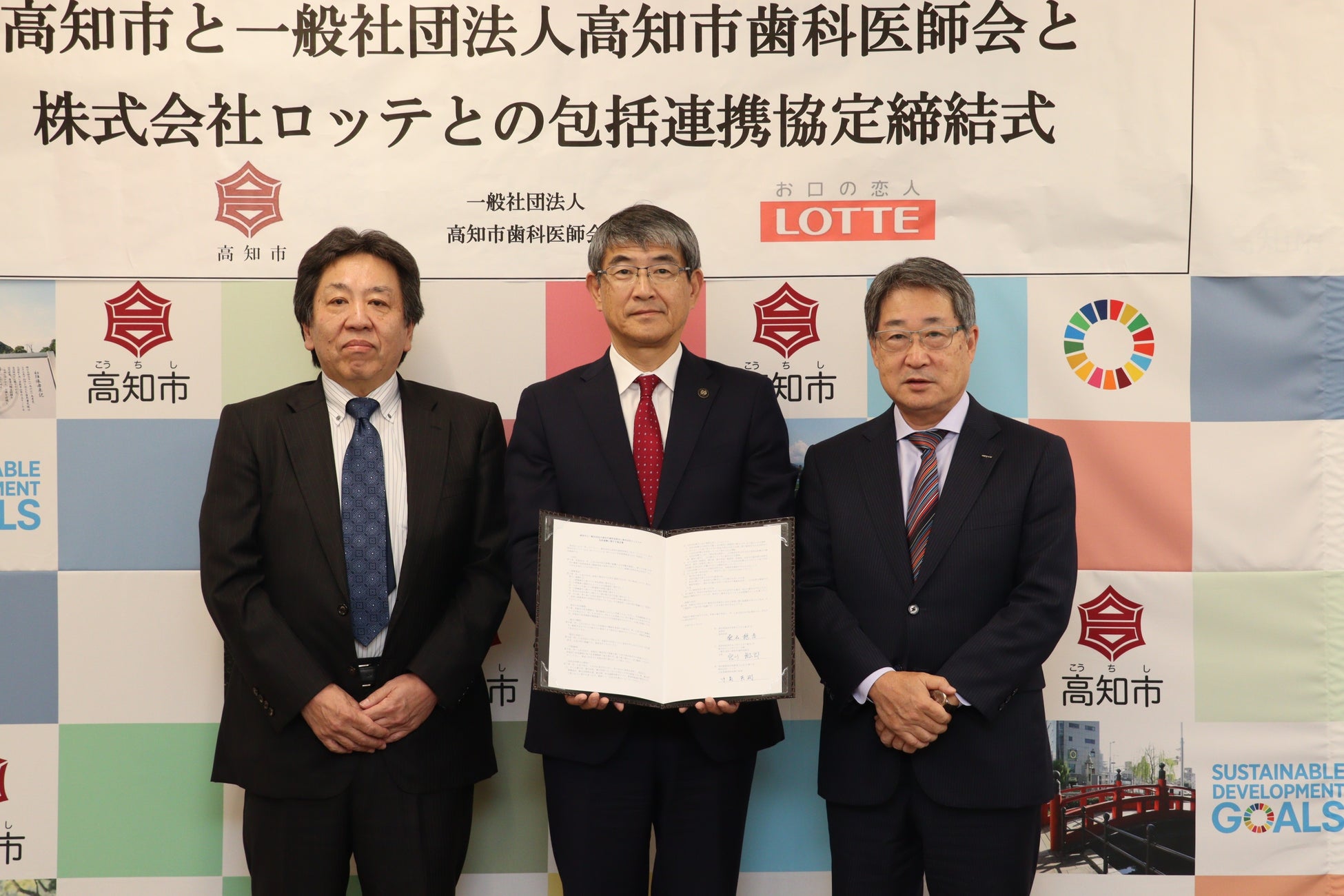 株式会社ロッテ(東京都新宿区 代表取締役社長執行役員:中島 英樹 以下 ロッテ)は2025年11月7日(金)に、高知市(高知県高知市 市長:桑名 龍吾) 、一般社団法人 高知市歯科医師会(高知県高知市 会長:宮川 慎太郎 以下 高知市歯科医師会)と「包括連携に関する協定」を締結いたしました。