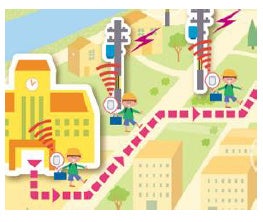 まちなかに設置されたカメラとビーコンのインフラ網を利用し、お子様や高齢者を見守ります。