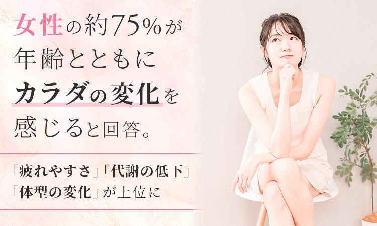 女性の約75%が「年齢とともにカラダの変化を感じる」と回答。「疲れやすさ」「代謝の低下」「体型の変化」が上位に