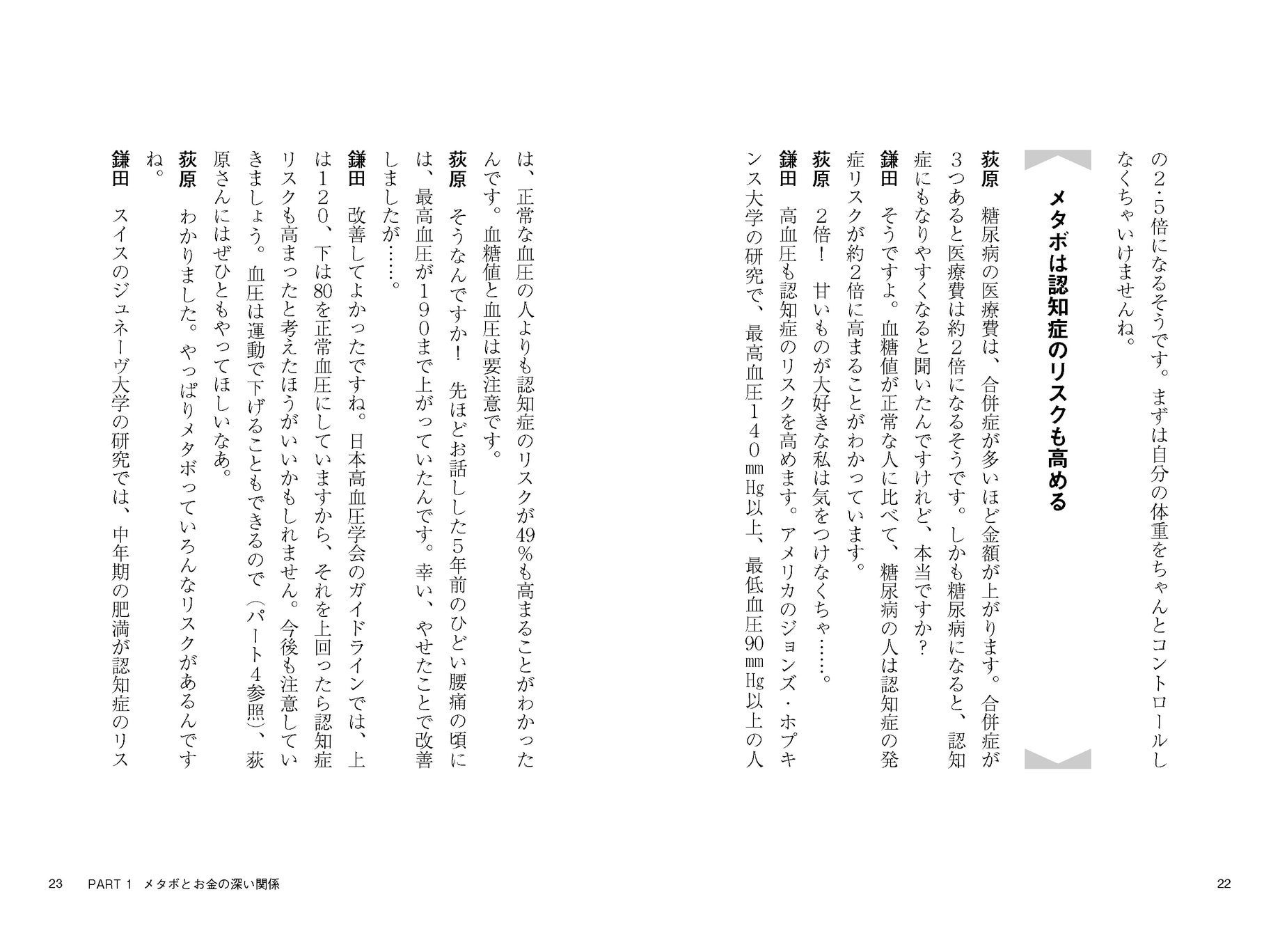 卵は1日1個まで、1日1万歩はウォーキングする必要がある、70代以上でも太りすぎはいけない。これまで常識だと思われていたことも最新の研究では変わっています。例えば卵は1日3個食べてもいい、1日1万歩の必要はないなど。こんな最新の知識も対談の中にたっぷり入っています。
