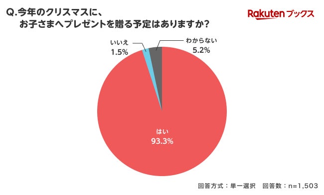 楽天グループ株式会社が運営するオンライン書店「楽天ブックス」は、クリスマスに向けて「楽天ブックス」ユーザー1,503名を対象に実施した「子どものクリスマスプレゼントに関する調査」結果を発表しました。