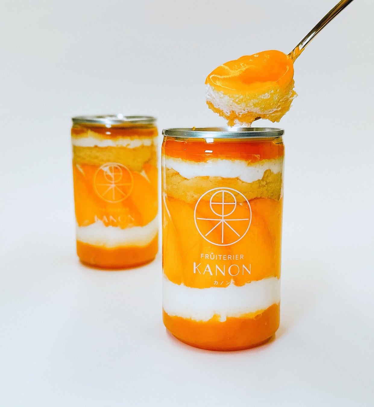 〈フリュテリーカノン〉フルーツCan プリン&ケーキ(マンゴー) 1個810円