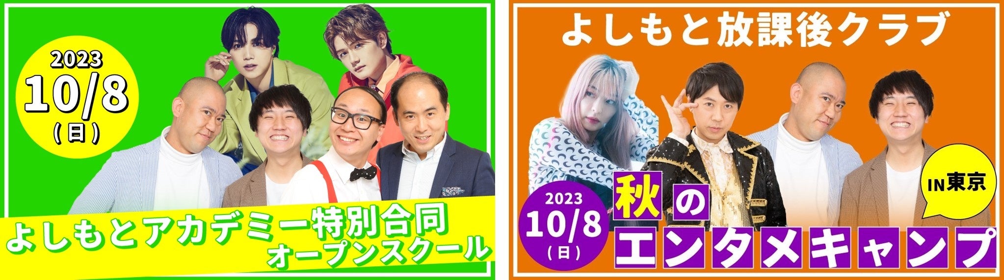また、小学生、中学生、高校生を対象に、子どもたちが放課後の時間を利用してエンタメなどを楽しく学べるクラブ活動「よしもと放課後クラブ東京校」では、文化の秋にふさわしい「よしもと放課後クラブ エンタメ秋のキャンプ in 東京」を同日に開催します。当日は、漫才ワークショップ、K-POPダンス教室が、入学前に体験ができます。講師は、コロコロチキチキペッパーズ(漫才ワークショップ)、A-NONとスカチャン(K-POPダンス教室)が務めます。
