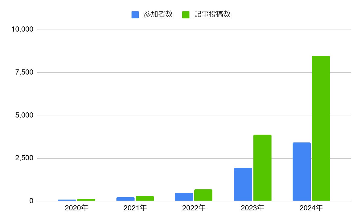 2024年に開催した前身の「Qiita Engineer Festa」では、前年比176%以上の3,425名の参加者数を記録。そして前年比218%以上の8,458件の記事が投稿され、過去最大の盛り上がりとなりました。