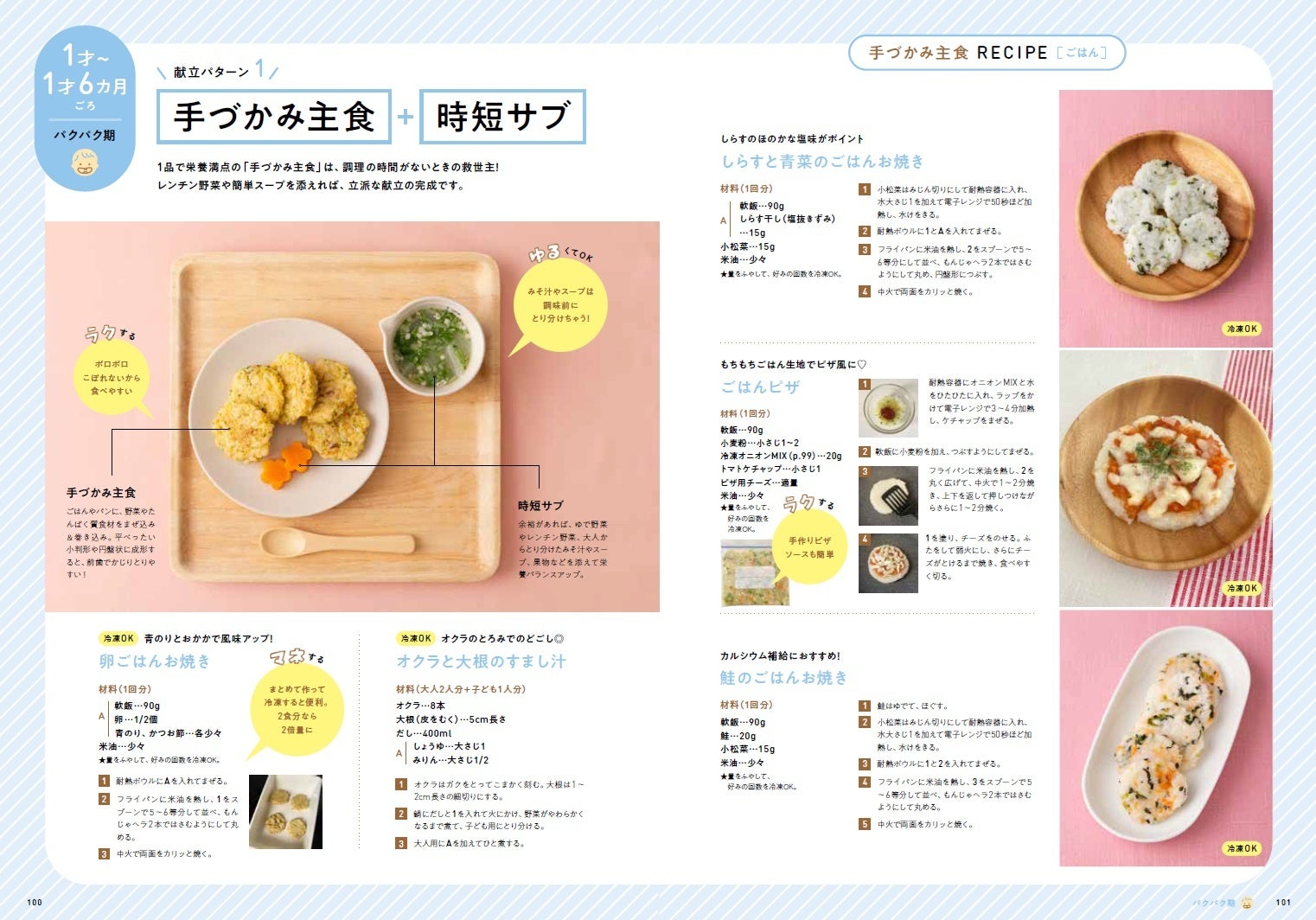 離乳食スタートの5カ月から、卒業の1才6か月ごろまではもちろん、その先5才くらいまでつづく幼児食まで。「子どもの食」を支える必要な知識がギューッとつまった充実の144ページ。これ一冊持っていれば、マネして進めるだけで幼児期まで乗り切れる、心強い内容です。