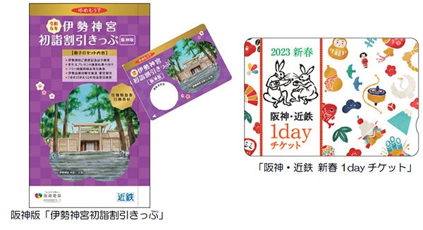 阪神電気鉄道株式会社と近畿日本鉄道株式会社では、阪神・近鉄沿線の初詣・初旅をお楽しみいただける阪神版「伊勢神宮初詣割引きっぷ」と「阪神・近鉄新春1dayチケット」を発売します。