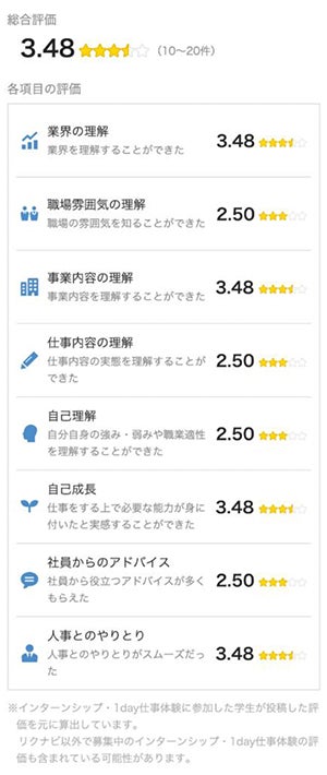 学生からの評価が10件以上投稿された場合のみ、評価された9項目が『リクナビ2026』上の各企業ページに公開されます。評価を軸としたインターンシップ&キャリアの条件検索も可能になるため、学生は業界や知名度など従来の判断軸だけでなく、すでに参加した学生の評価を見て、インターンシップ&キャリアを選ぶことができます。