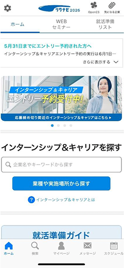 学生が自分に合ったインターンシップ&キャリアを見つけるための『リクナビ2026』の機能