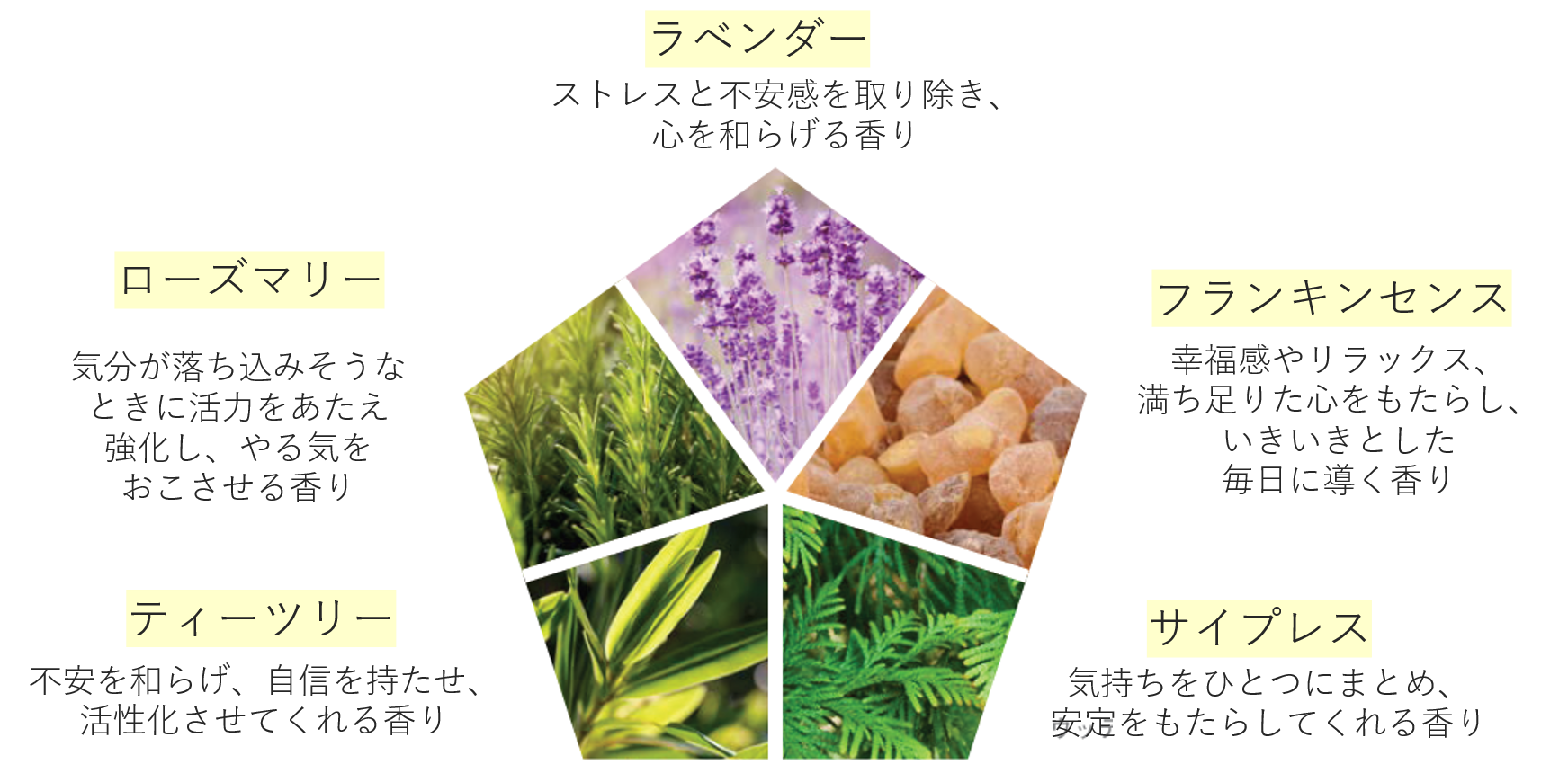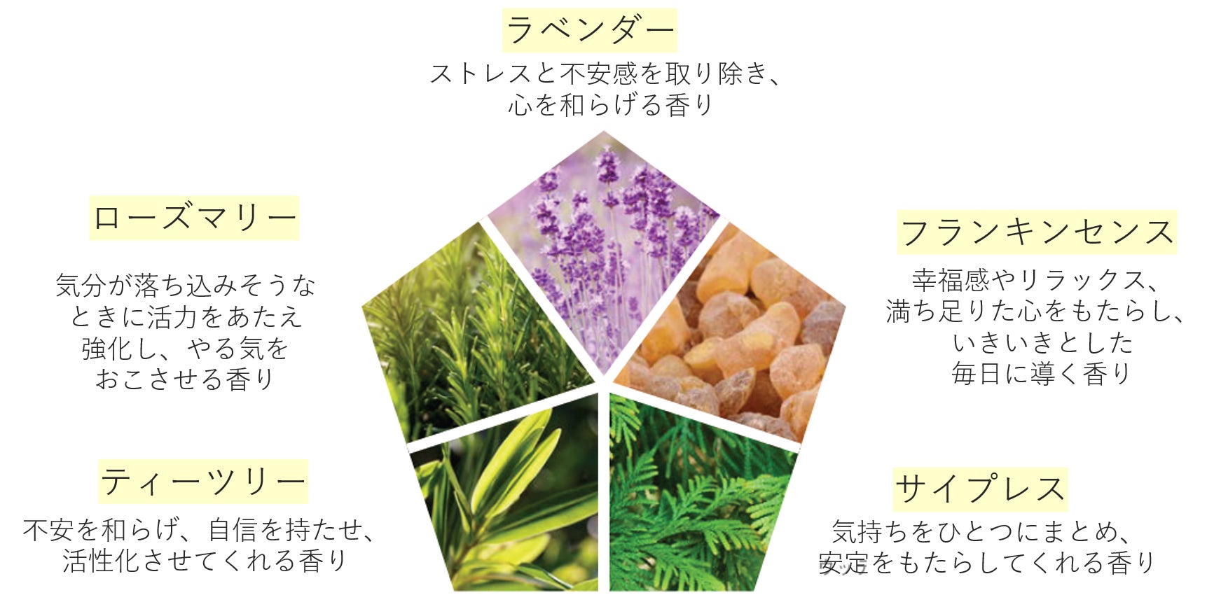 ひと拭きで瞬間広がる天然精油の香り。メントール配合でひんやりクリアな心地よさ。