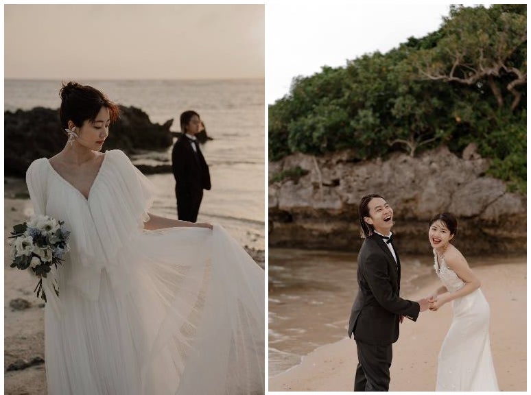 インタビューでは今年3月に行った沖縄・伊良部島での前撮りについて話す場面も。お互いのドレス姿・タキシード姿を見たのはこれが初めてだったそうで、感想を聞かれたこうへいさんは「きれいでした」と照れ笑い。あみさんは「(婚姻届を提出しても)結婚した実感がなかったんですけど、ばーって実感が湧きました」と思い出深い様子でした。また、それぞれにお気に入りの一枚を聞くと、こうへいさんは「あみがメインの、僕が背景でボケているやつ。一番いい」と初公開の写真を披露。あみさんは「崖っぽいところでノリノリの中撮られた1枚が自然体で好きでした」とそろって大満足でした。
