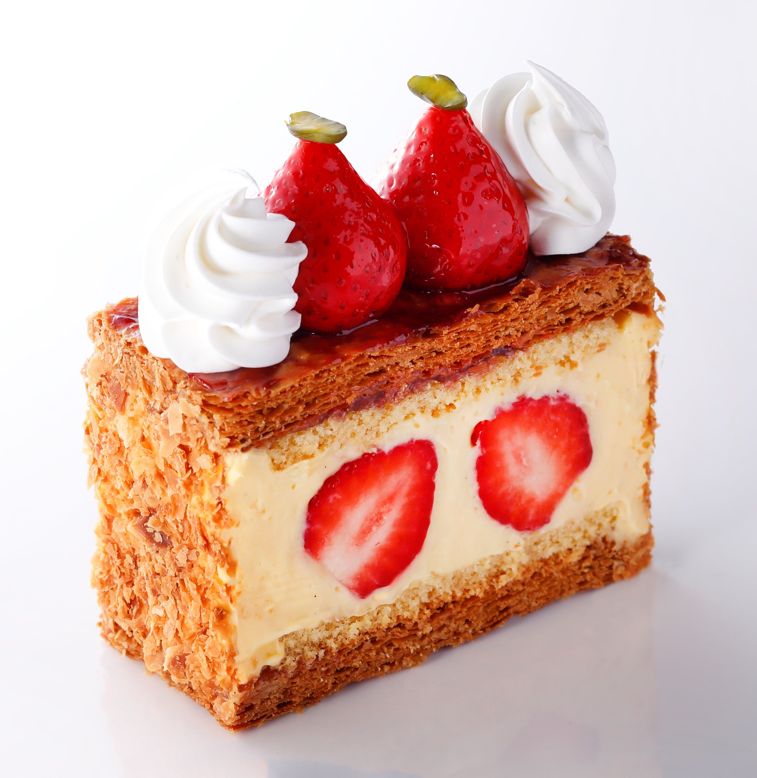 さらに、サクサクのパイ生地で、博多あまおうと特製カスタードクリーム、ふっくらとしたスポンジをサンドした「あまおうナポレオンパイ」(写真左・¥1,404)やピエール・エルメ・パリの代表スイーツ「イスパハン」とパティスリーSATSUKIの代表スイーツ「エクストラスーパーショートケーキ」が織りなす最高のコラボレーションスイーツ、「エクストラスーパーイスパハンショートケーキ」(写真中央・¥3,780)など店頭では1ピース¥4,000以上する極上スイーツも並びます。そのほか定番の「スーパーオペラレジェール」(写真右・¥1,728)や不動の人気のパンケーキやクロワッサン、グラススイーツ、ジェラートのほか、オリジナルサンドウィッチなどの軽食もご用意し、豊富なラインアップでお届けします。