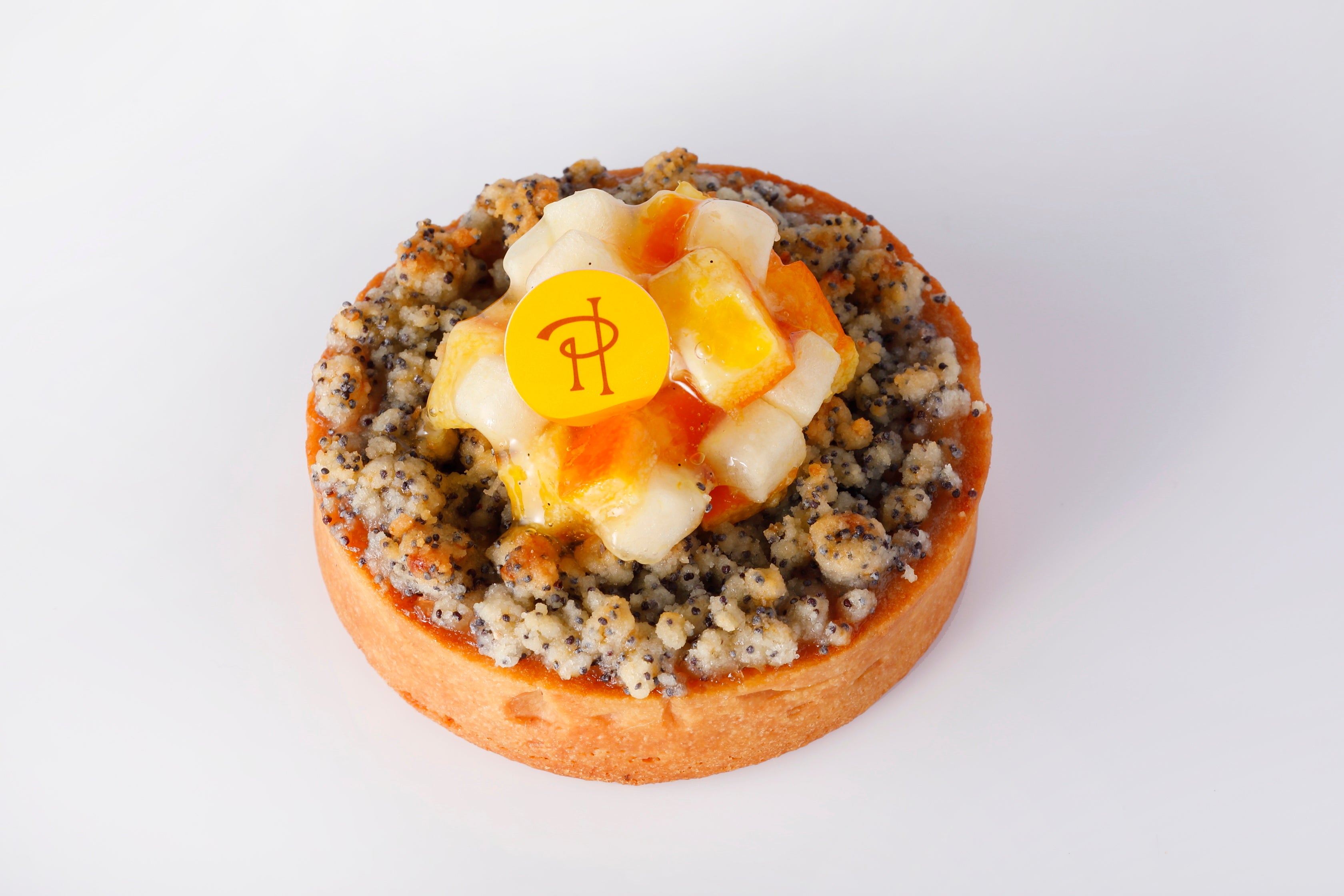 また、パッションフルーツの甘酸っぱい風味を活かしたビスキュイの土台に、クリームチーズ入りの魅惑的なクリームが特徴的な「サティーヌ」(写真左)、「ショートケーキオーロラ」などの人気の定番のほか、フランボワーズ風味のムースショコラとビスキュイショコラ、クレームブリュレフランボワーズを濃厚なチョコレートでコーティングした「リーヴゴーシュ」(写真中央)、オレンジ風味のリンゴを使ったタルトに、ケシの実入りクランブルのザクザクとした食感が特徴的な「タルト オ ポム ア ロランジュ」(写真右)など、ピエール・エルメ・パリ開業25周年を迎え、オープン当時に愛されていたスイーツも復刻して登場。