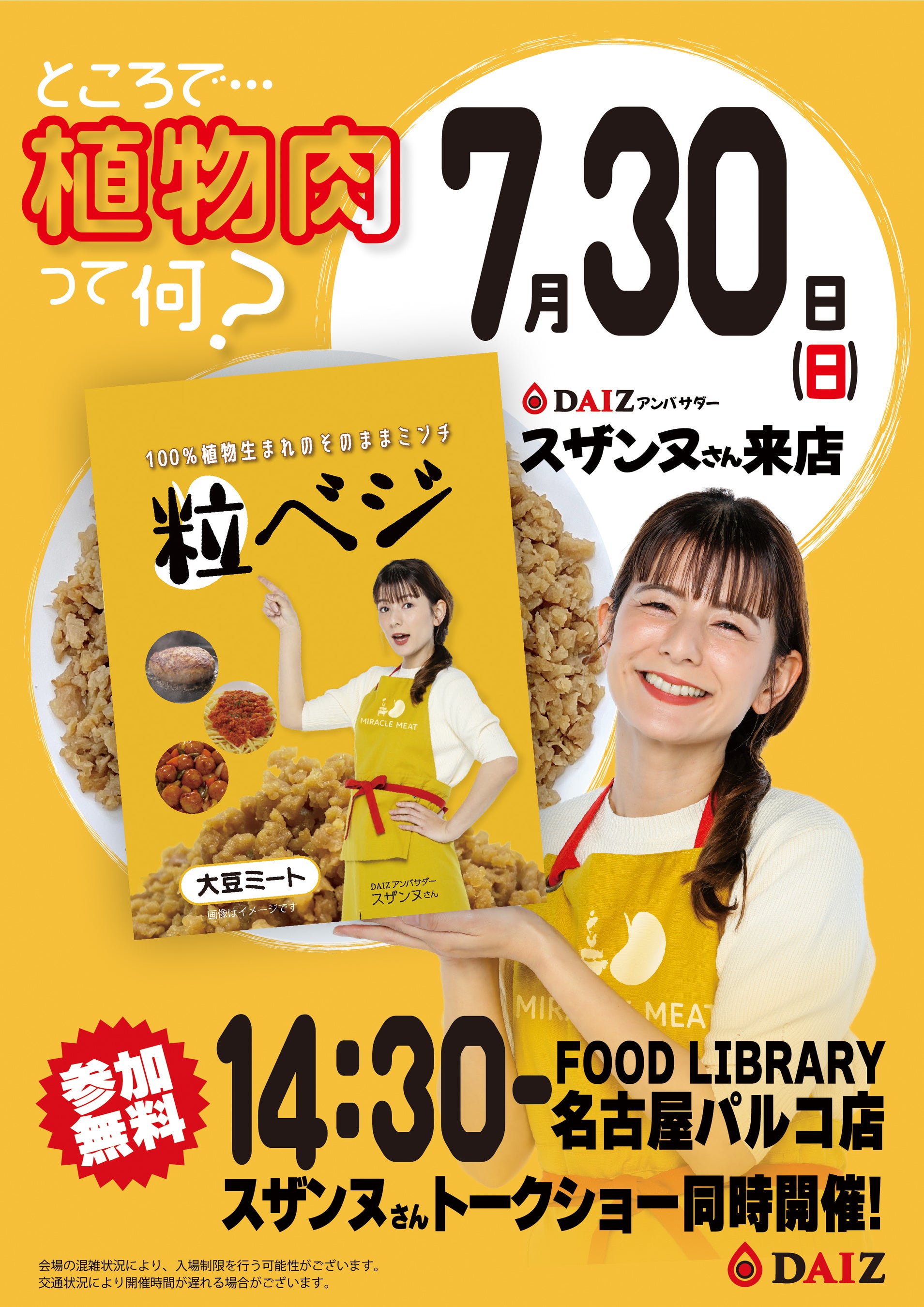 期間中、タレントのスザンヌさんによる「粒ベジ」のご紹介トーク・試食イベントを行います。