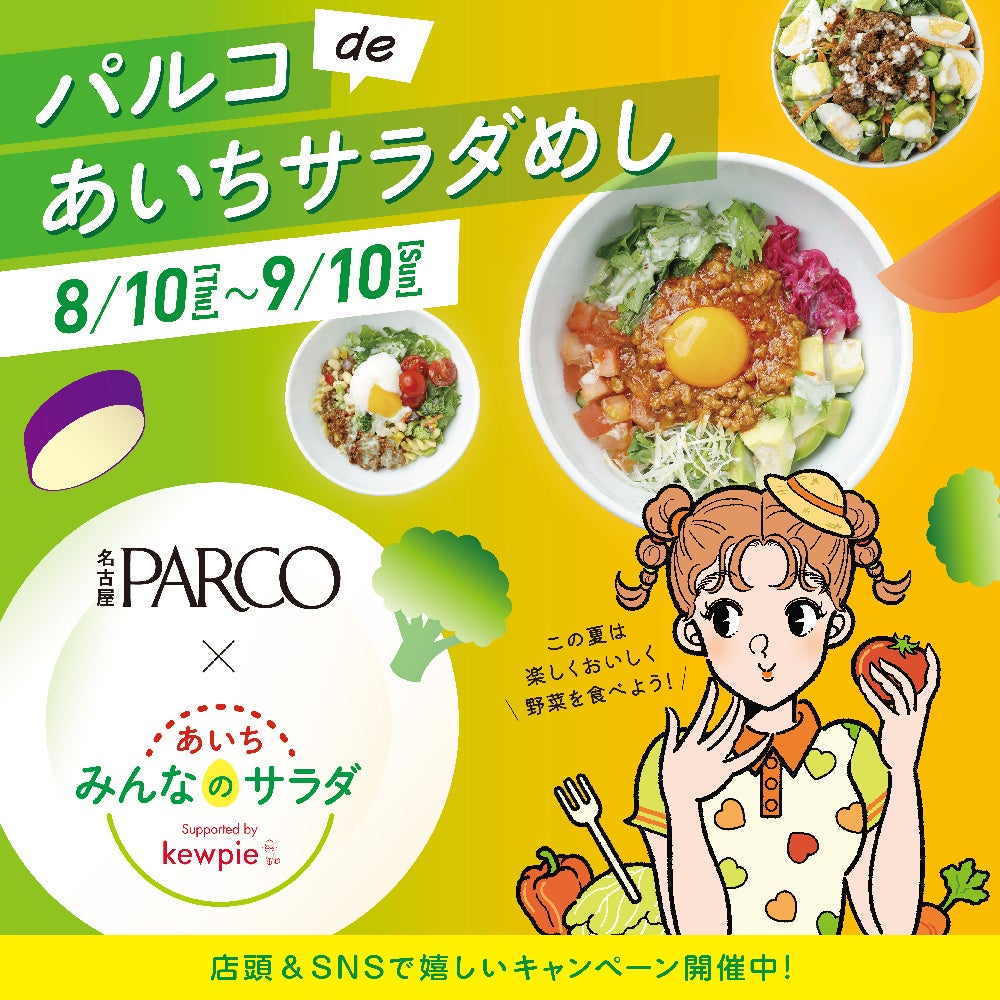 野菜の摂取量が少ないと言われる愛知県民のために誕生した”あいちサラダめし”を、西館B1F・7Fの9店舗で提供いたします。ノベルティプレゼントやSNSフォローキャンペーンなど、豪華賞品が当たるチャンスもございます。