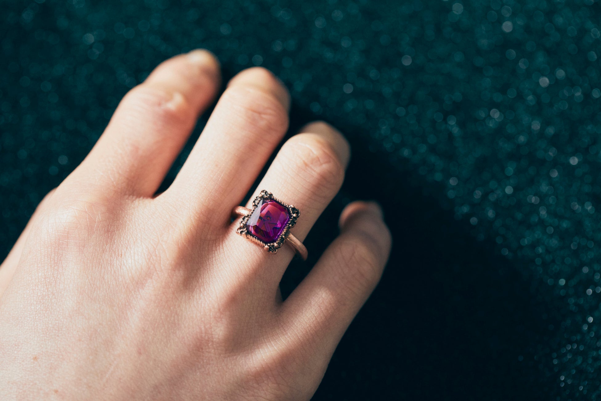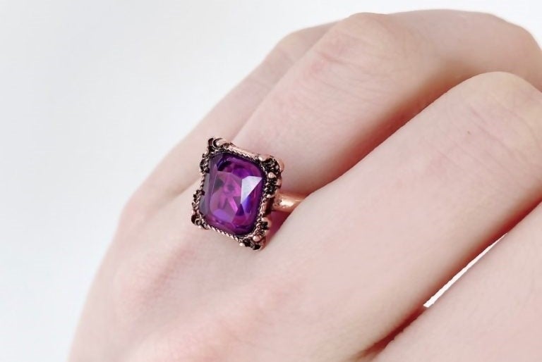 旅行など遠方へ赴く際のお守りに。高貴でミステリアスなパープルのスクエア型ストーン。