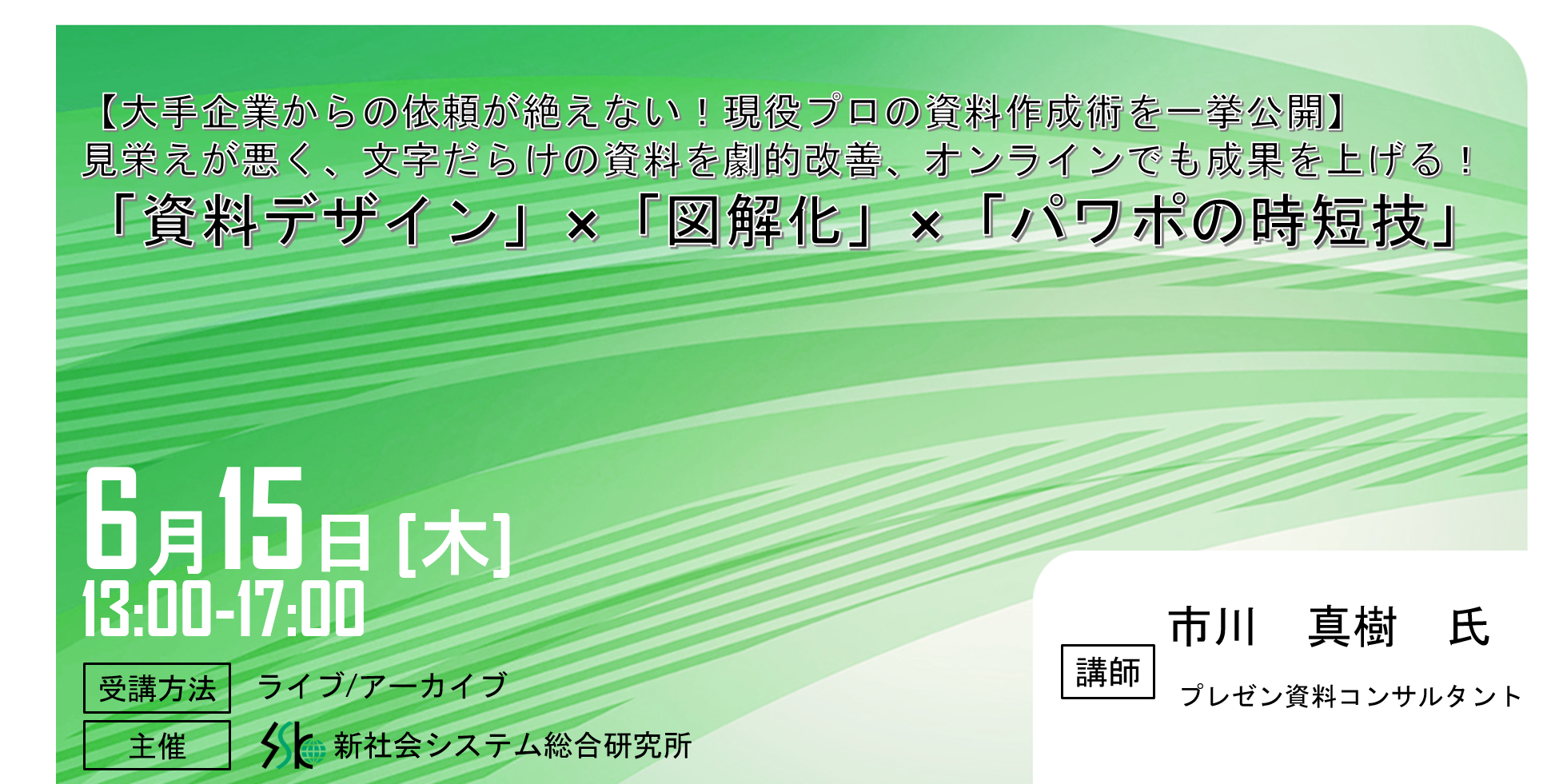 『「資料デザイン」×「図解化」×「パワポの時短技」』と題して、プレゼン資料コンサルタント 市川 真樹氏によるセミナーを2023年6月15日(木)に開催!!