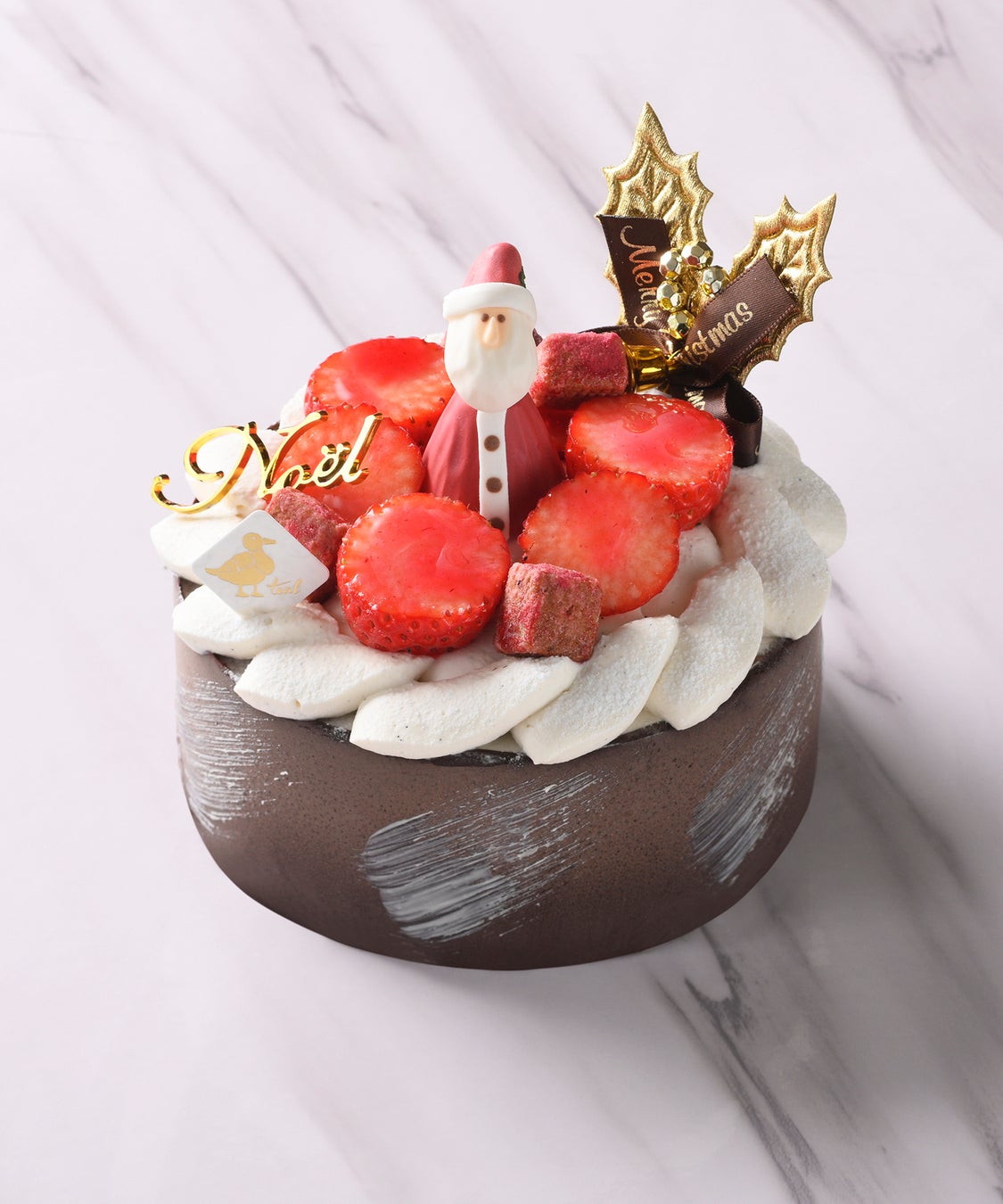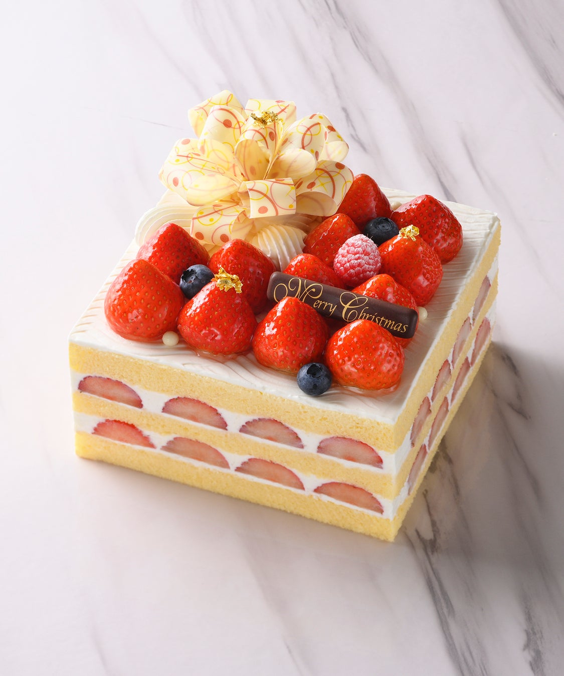 スポンジケーキはきめ細かな生地に焼き上がるよう選び抜いた小麦粉を使い、しっとり、ふんわりとした口どけに焼き上げています。そこに乳脂肪分の異なる2種類の北海道産生クリームをブレンドし、ミルクの風味とコク、そして甘味をもちながら口どけがよくすっきりとした味わいが楽しめるクリームに仕上げ、スポンジケーキに重ねました。豊かな風味のクリームとスポンジ生地のバランスに、甘酸っぱい苺を合わせた王道のクリスマスケーキです。