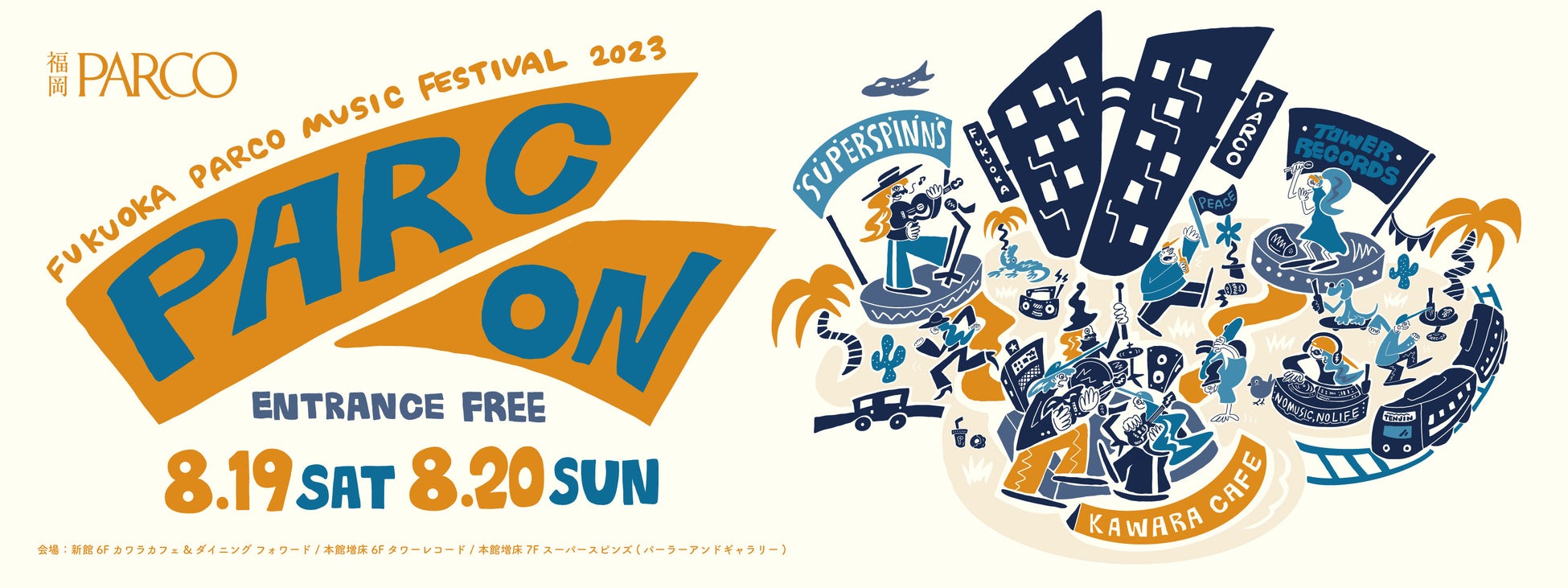 『パルコ遊涼み』の中の1企画として、音楽フェスティバル『PARC ON』(パーク・オン)を2023年8月19日(土)・20日(日)の2日間、カワラカフェ&ダイニングフォワード(福岡PARCO 新館6F)・タワーレコード(本館6F)・スーパースピンズ(本館7F)にて開催します。
