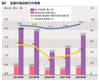 「じゃらん宿泊旅行調査2023」によると、コロナ禍による観光業界の縮小から、本格的な回復が見られた2022年度の国内宿泊旅行市場ですが、2024年もインバウンド需要含め、引き続き順調な回復傾向となっています。