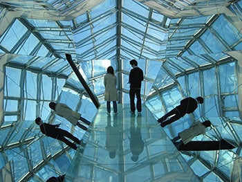 視覚・聴覚・嗅覚・触覚といった“感覚”をテーマにしたミュージアム。「身体感覚空間」と「瞑想空間」の2つのゾーンで構成された館内には、天井がガラスになっていたり、壁と床が鏡の空間やそのほか見たこともない楽器、耳のオブジェなど、感覚を意識することのできる展示が並び、楽しみながらイマジネーションが高められる施設です。