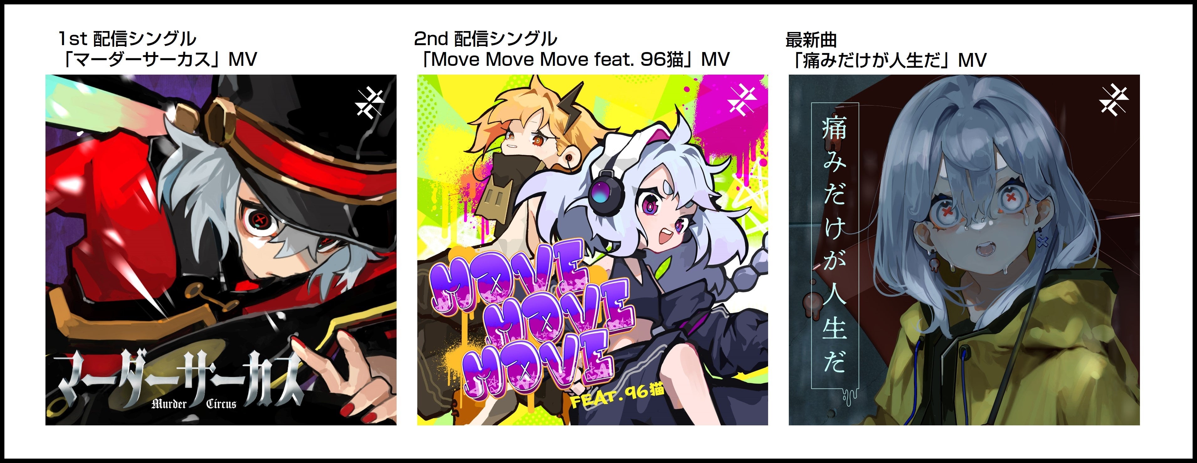 1st配信シングル「マーダーサーカス」から、2nd 配信シングル「Move Move Move feat. 96猫」、最新曲「痛みだけが人生だ」の映像をLezelのトークも交えて配信!