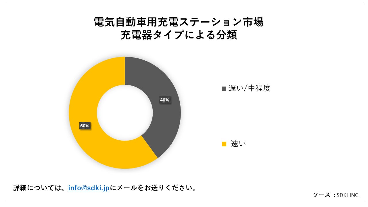 充電器タイプに基づいて、速充電器タイプは、2035年末までに最大の市場シェアを占めると予想されています。このサブカテゴリーは、2020年の市場において84%までの収益シェアを占めています。この充電器タイプは、EVを可能な限り高速で、かつバッテリーに安全な方法で充電できることが、このサブカテゴリの成長予測の主な理由です。2021年末までに米国だけで21675台以上のDC急速充電器が設置されていると推定されています。