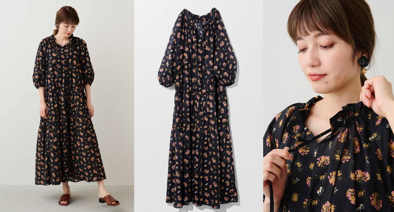 カントリー調のヴィンテージドレスをイメージしたワンピースです。涼やかな透け感のある生地に、フラワー柄のオリジナルプリントをあしらっています。一枚でリラックスした開放感と着映えが叶います。ゆったりした身幅なのでからだのラインのカバーもしてくれます。