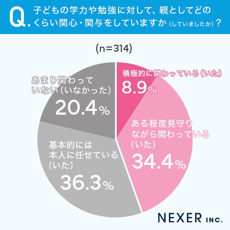 まず、子どもの学力や勉強に対して親としてどのくらい関心・関与をしているか(していたか)聞いてみました。