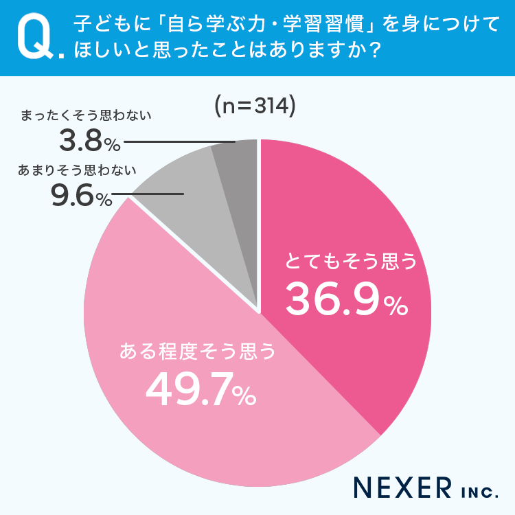 続いて、子どもに「自ら学ぶ力・学習習慣」を身につけてほしいと思ったことがあるか聞いてみました。