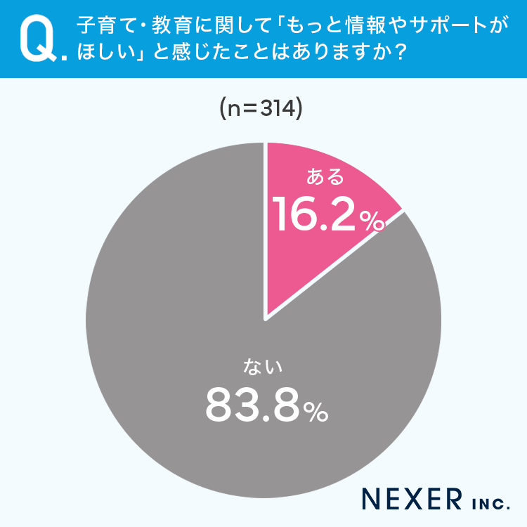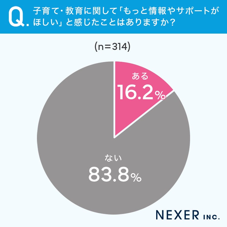 ■16.2%が、子育て・教育に関して「もっと情報やサポートがほしい」と回答