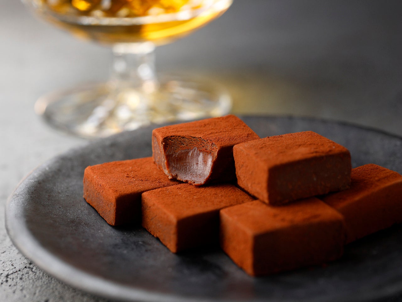 酒ガナッシュは、生チョコレートのようななめらかな口どけが特長です。一般的な生チョコレートが生クリームでみずみずしさを出すのに対し、本商品ではあえて生クリームを使用せず、ウイスキーの配合量をできる限り高めています。この革新的な配合により、アルコール分は3.6%となっています。芳醇なウイスキーの香りが口いっぱいに広がり、その余韻に深く酔いしれる、大人のための特別な一粒です。