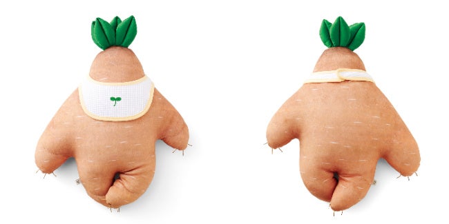 〈FRONT〉と〈BACK〉です。本物らしさを残したほどよいデフォルメ感がかわいいデザインです。手足の先には細い根も生えています。