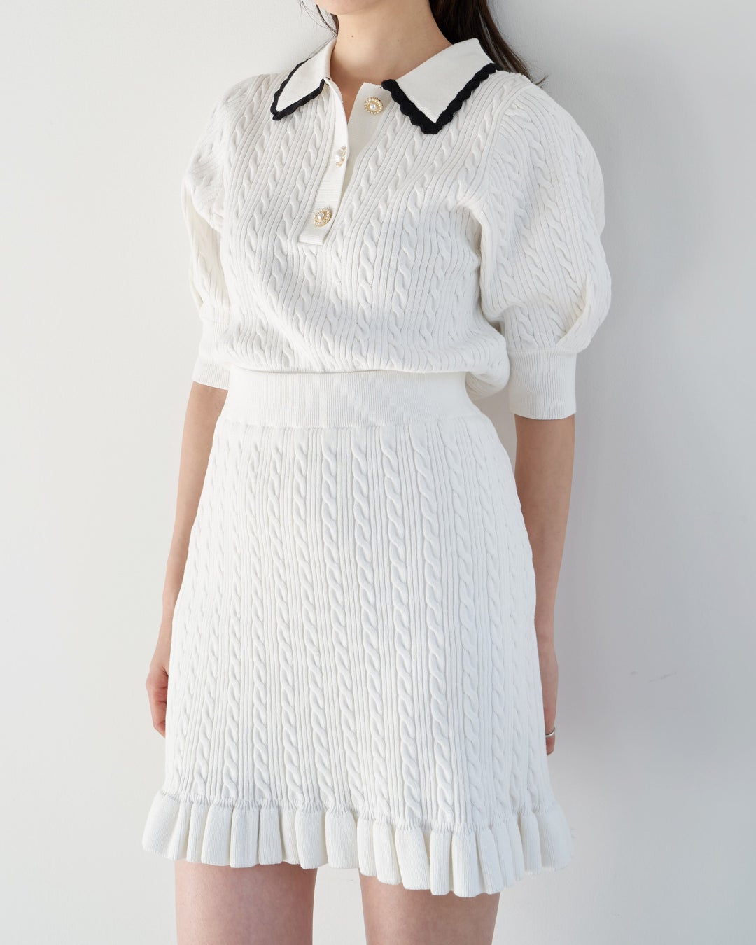 トップスと同様のケーブル編みが特徴的なミニスカート。