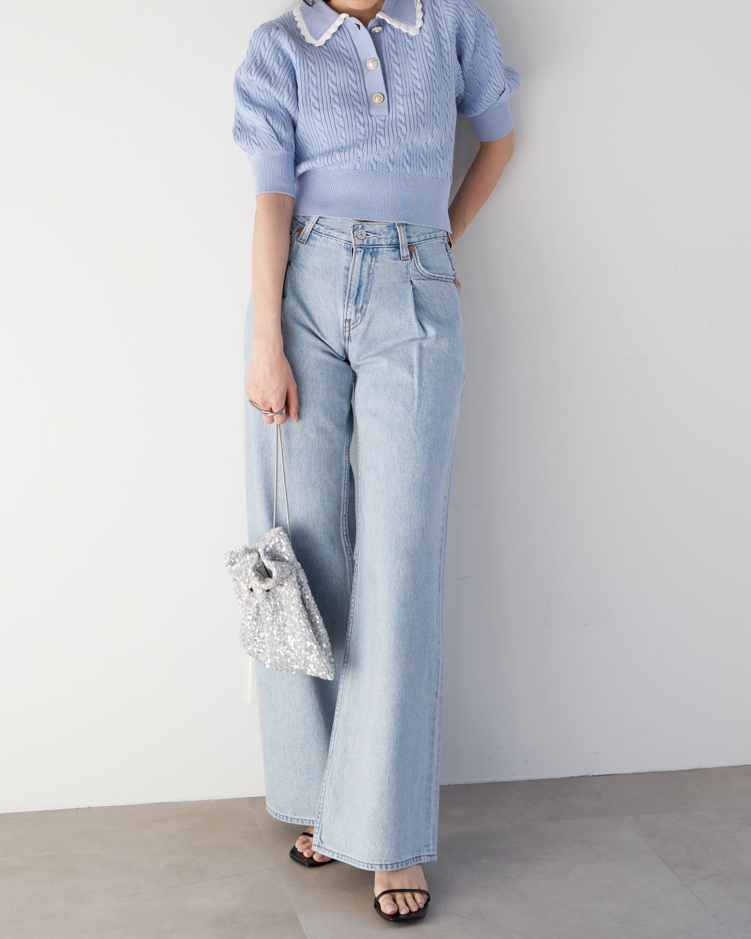 クラシックなケーブル編みにスナイデルらしい華やかな雰囲気をプラスしたトップス。