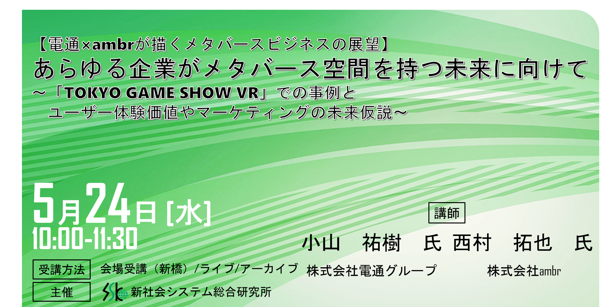 「あらゆる企業がメタバース空間を持つ未来に向けて」と題して、株式会社電通グループ 小山 祐樹氏/株式会社ambr 西村 拓也氏によるセミナーを2023年5月24日(水)に開催!!