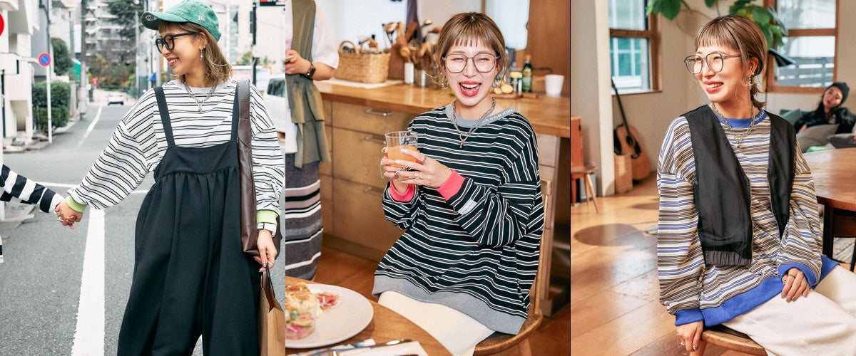 普段からカラー使いを得意とするみわたらがこだわりぬいた配色が目を引くボーダーTシャツ。簡単におしゃれ見えする配色と首元の刺繍がポイントです!