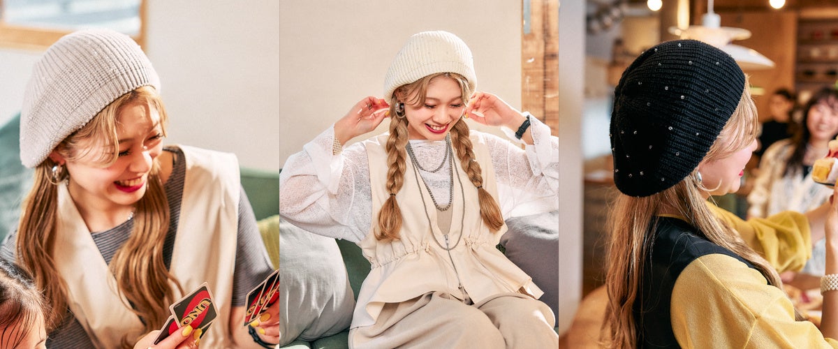 「360度どこから見てもカワイイ帽子」を今回企画しました!キラッと輝くおしゃれなクリアビーズデザインと春夏も被れる通気性の良い綿素材を使用しているのがポイント。小顔に見える程よいボリュームも私のこだわりです♪