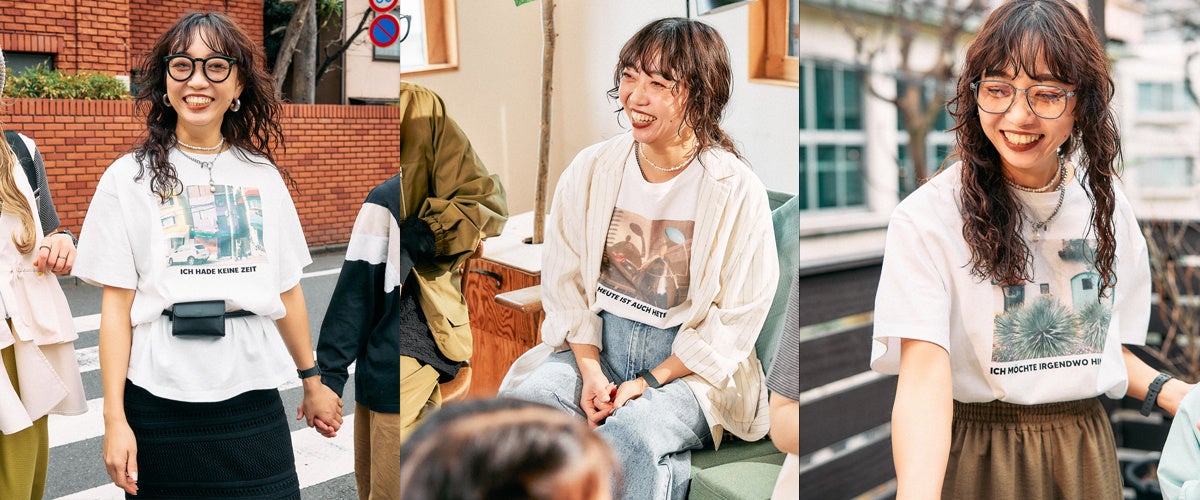 生活に溶け込む暖かい日常風景をコンセプトに、かつこの友人から提供してもらったフォトをプリントした、フォトTシャツ。毎日のモチベーションUPに繋がるデザインテキストの意味にもこだわり、どんなコーデにも合わせやすく、着まわせるTシャツを企画しました♪
