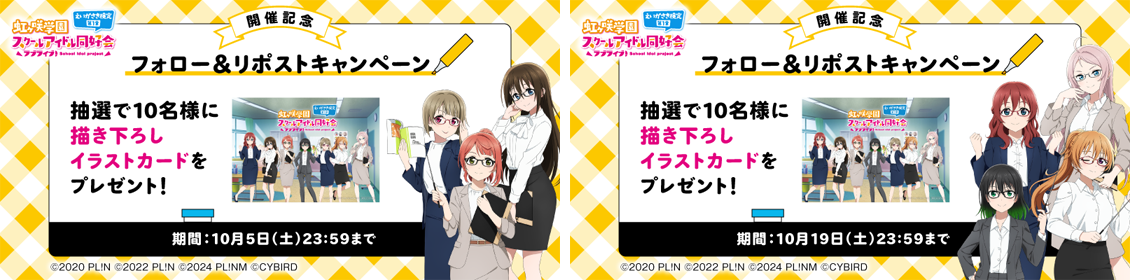 「ラブライブ!虹ヶ咲学園スクールアイドル同好会 えいがさき検定 第1章」の開催を記念して、描き下ろしイラストを使用したオリジナルデザインのイラストカードが抽選で10名様に当たるキャンペーンを開催します。