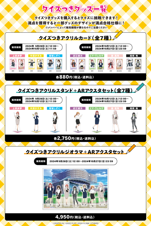 ※クイズつきアクリルカード・クイズつきアクリルスタンド+ARアクスタセットは期間を二回に分けて販売します。