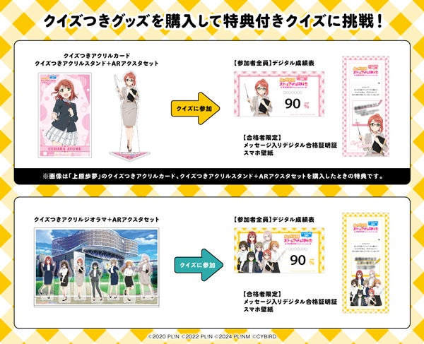 クイズつきグッズを購入した方は全10問のクイズ(検定)に参加でき、クイズ終了後には「デジタル成績表」を獲得できます。