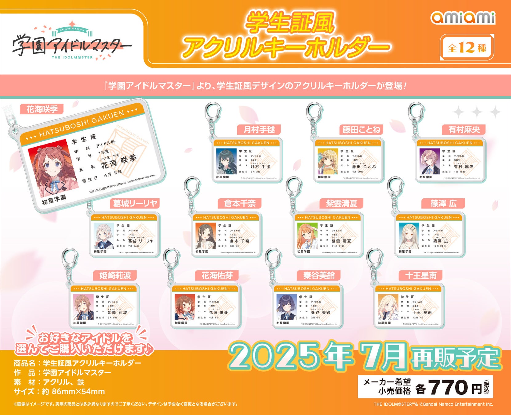 『学園アイドルマスター』より、学生証風デザインのアクリルキーホルダーが登場!