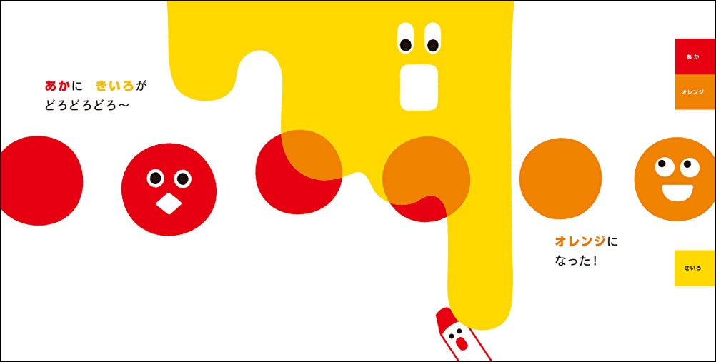 ユーモラスでかわいいクレヨンたちの案内で「色」の世界をめぐるうちに、単色や混色、色から感じる気持ち、色相環...まで、楽しみながら自然と色について学べてしまうのがポイントです。