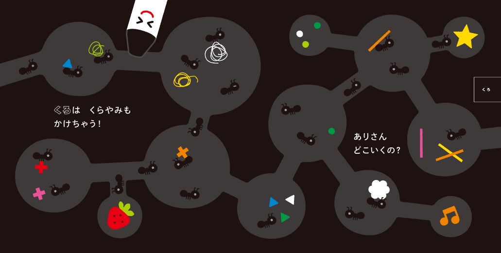 見どころは、色から→色へと移り変わる「へんしん!」ページ。