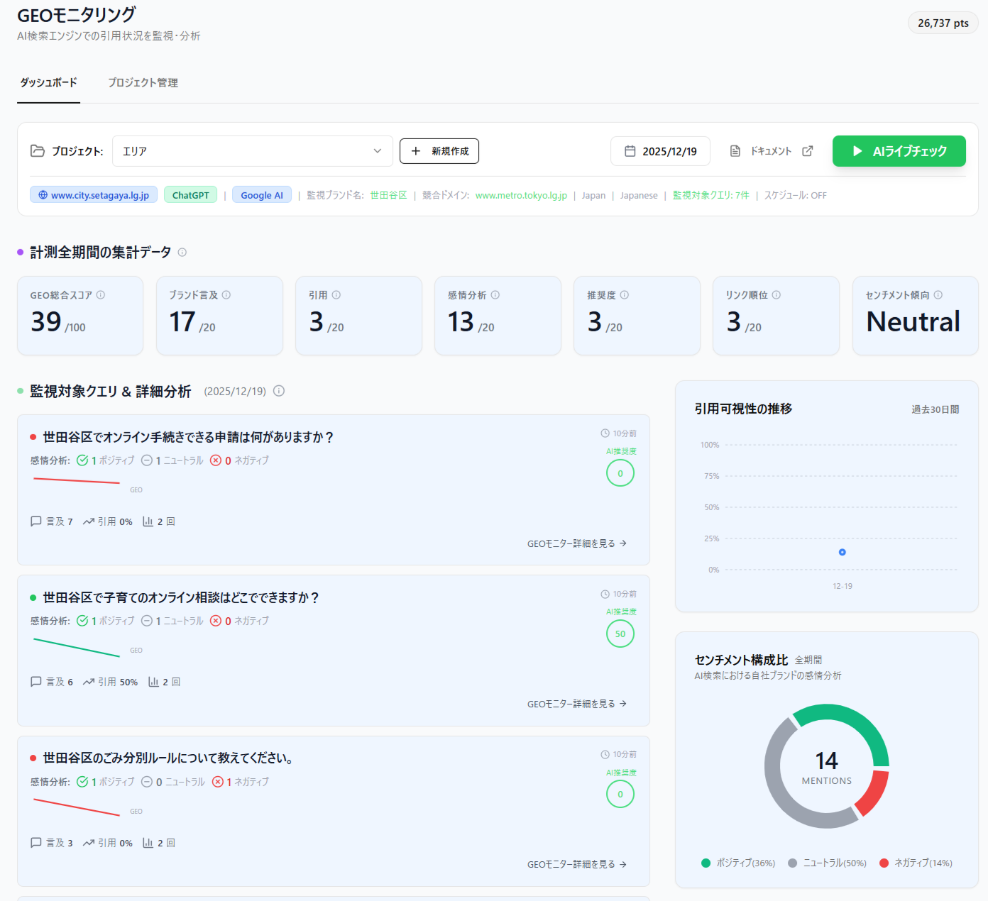 楽天グループのリンクシェア・ジャパン株式会社(以下「リンクシェア・ジャパン」)は、本年11月より、ベンジー株式会社と共同開発し提供している、SEO(検索エンジン最適化)・AIO(AI検索最適化)・GEO(生成AIエンジン最適化)の統合分析ツール「LinkSurge」(リンクサージ)において、新たに4つの機能を本日提供開始しました。
