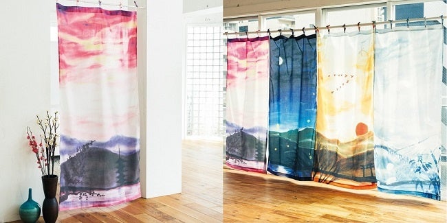 枕草子の中で歌われ、清少納言と藤原定子が宮廷から眺め、めでていたと思われる風景を表現したマルチカーテンです。