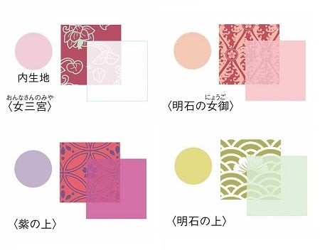 デザインは、左上から〈女三宮〉、〈明石の女御〉、〈紫の上〉、〈明石の上〉の4種類です。