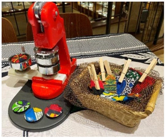 (2) キテンゲ缶バッジづくりワークショップ